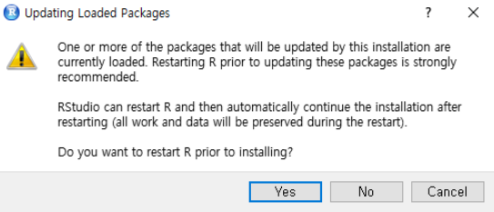 R Error Tip || library 호출할때 '경고'나 업그레이드 팝업이 뜨는 경우 / "패키지 'xxxxx'는 R 버전 4.0.4에서 작성되었습니다" + installr 패키지 본문