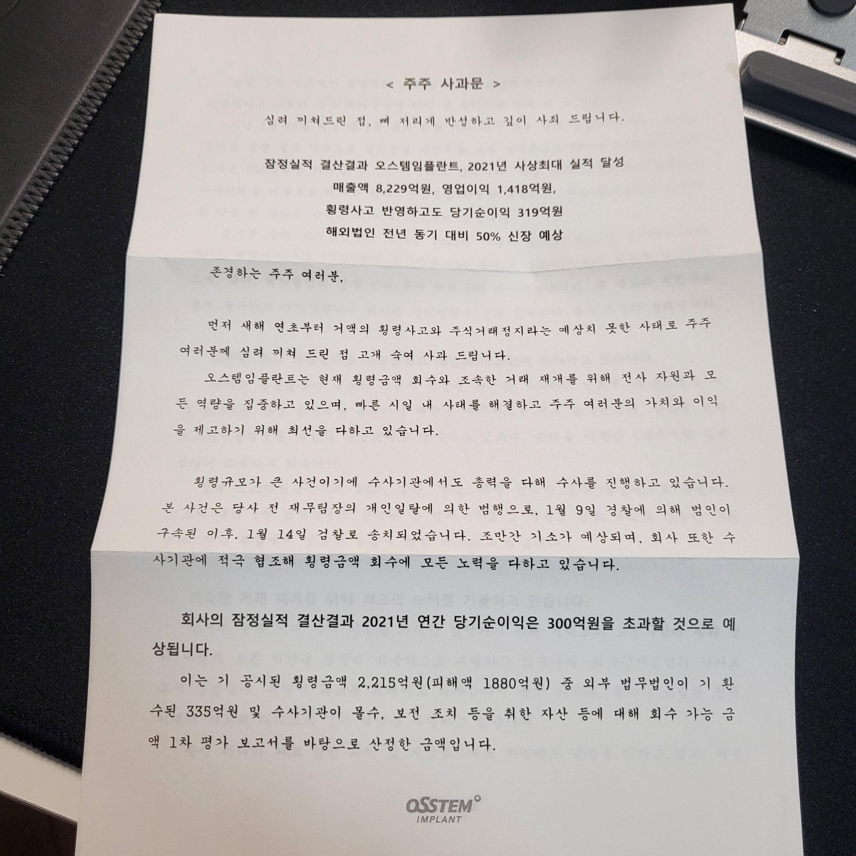 오스템임플란트 사과문과 탄원서를 받아보고 꿍얼대기 (인생 첫 드디어 상폐위기픽) 본문