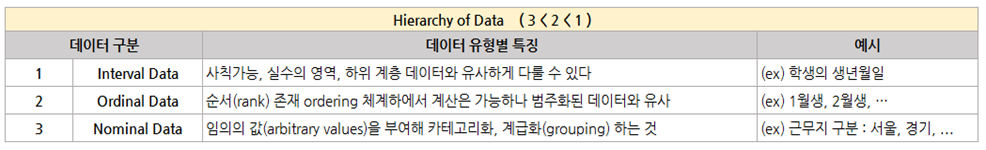 * 데이터 유형 및 데이터의 계층 구조(Hierarchy of Data)
