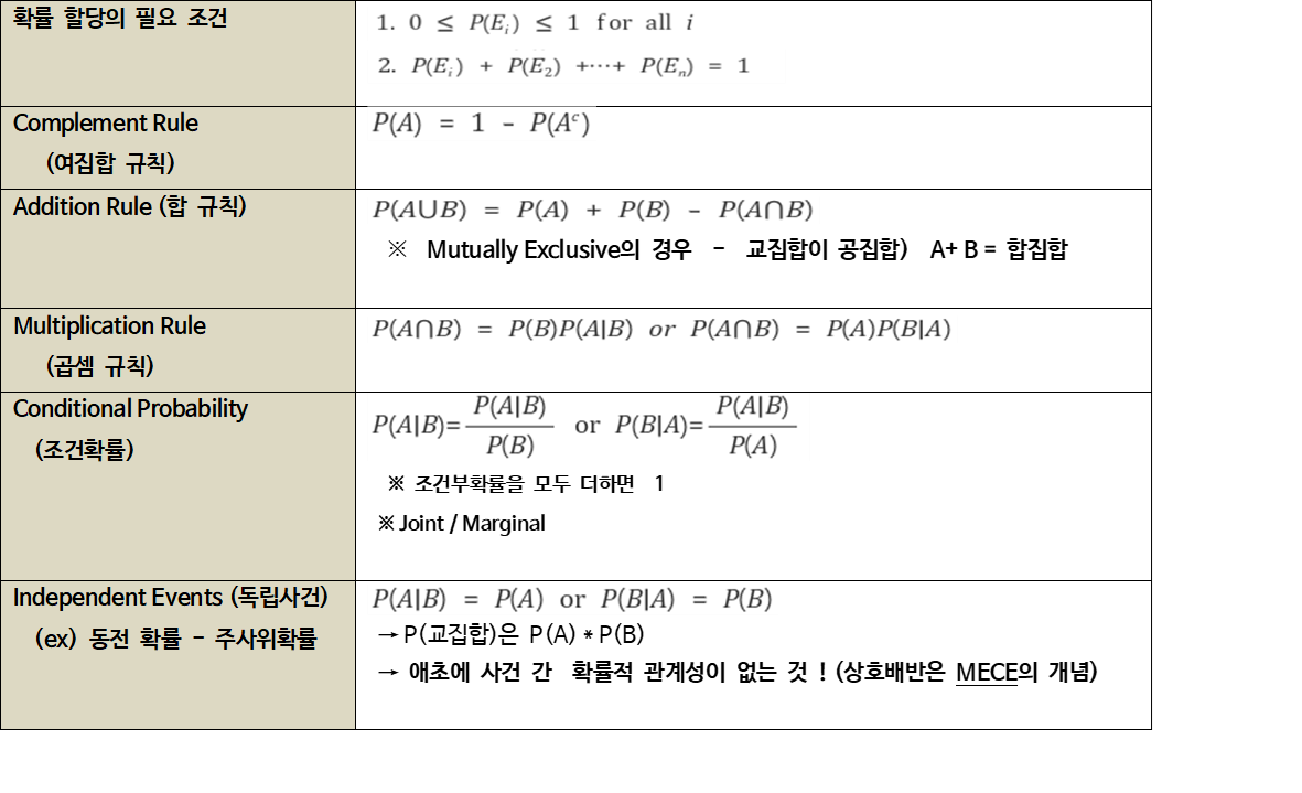 → 애초에 사건 간 확률적 관계성이 없는 것 ! (상호배반은 MECE의 개념)
