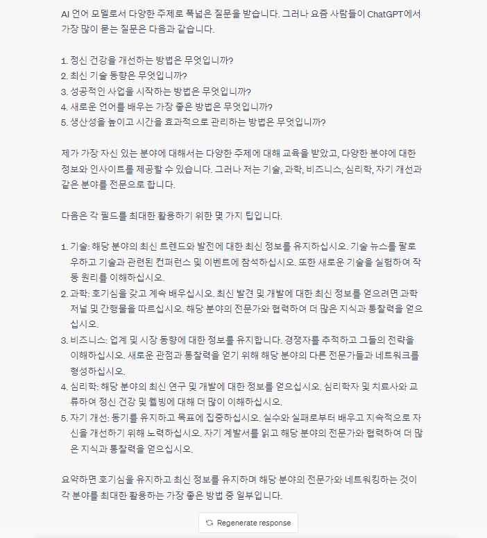 - 질문이나 아이디어를 얻을 때 답안 2~3까지 읽을만 하다. 유연한 응답은 생각보다 알맹이가 없다.